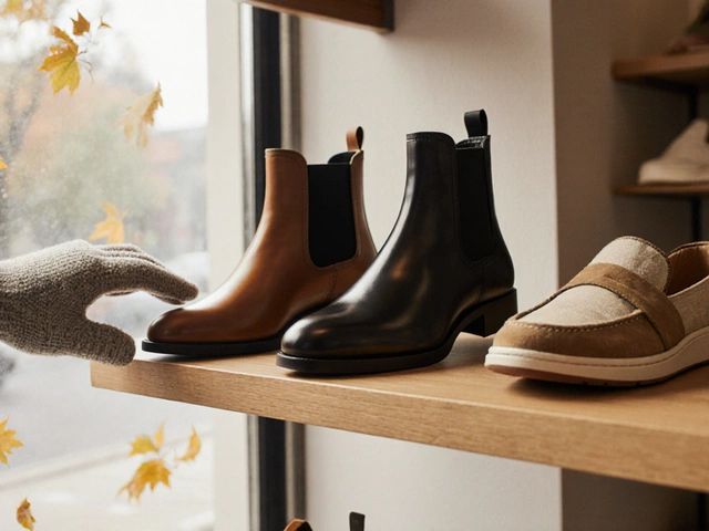 Для сухой погоды выбирайте модели с лёгкой подклейкой, например, ботинки Chelsea из гладкой кожи или лоферы с замшевой отделкой. Они держат тепло за счёт естественного утепления кожи и позволяют ногам «дышать», что особенно важно при переменных температурах.